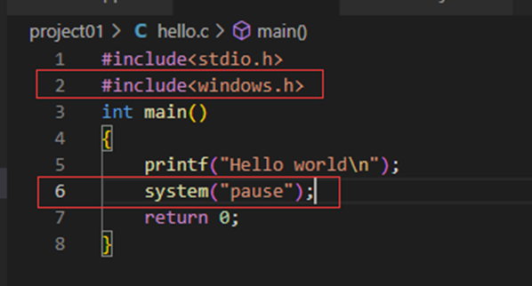 此方法的优点是此时无论是在VsCode编译运行(在VsCode中运行时注意要在launch文件中启用外部终端),还是到电脑文件夹中打开运行,均不会造成闪退,而且使用方案二时,可以省略掉方案一的所有操作。缺点是每写一次代码文件时就需要添加上述红框中的代码。(网上也有其他的代码来使程序框运行后不直接退出,但本质均为添加代码的方法。)