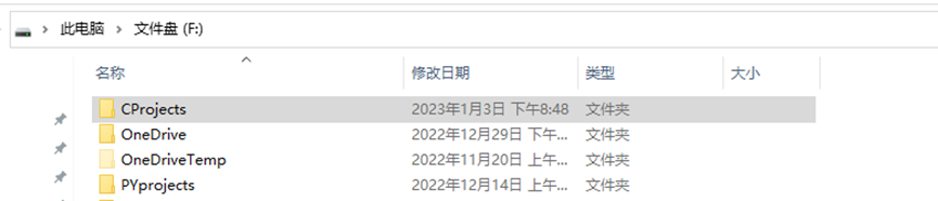 在C盘以外的盘中建立一个文件夹,名字全英文,表示以后建立的C/C++的工程文件均放置于此,如图: