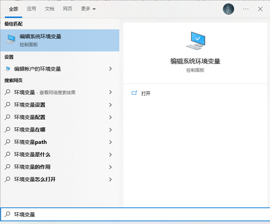 在搜索框中输入“环境变量”,点击编辑系统环境变量。