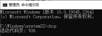 cmd终端编码格式默认为GBK格式,即简体中文格式,即在cmd终端中输入chcp,显示为“活动页936”(如下图所示)。