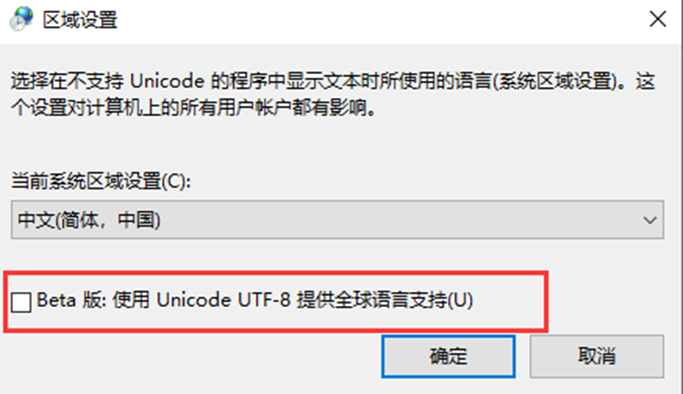在下图中勾选后点击确定,会弹出重启电脑的提示框,重启电脑完成后电脑cmd终端即可变更为UTF-8编码。