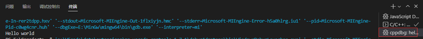 VsCode默认将你编写的程序的运行输出到cppdbg终端。如下图所示: