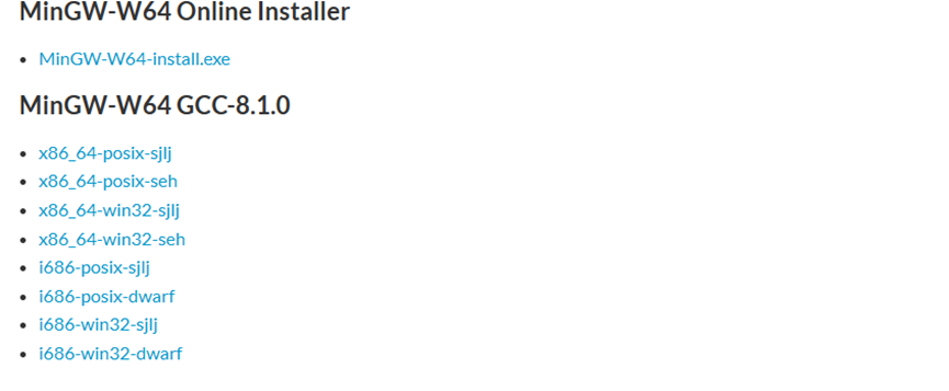32位选择i686-win32-sjlj或i686-win32-dwarf,64位可选择x86_64-win32-sjlj或x86_64-win32-seh,不同点在于sjlj更稳定,seh,dwarf性能更优,有关seh,sjli,dwarf实际上是三种异常处理模型,并不会特别影响程序的运行。详情参见:https://blog.csdn.net/AMDDMA/article/details/111600238