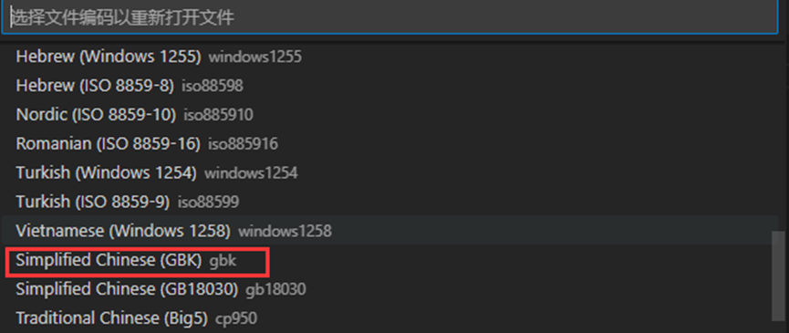 下滑找到“GBK编码”,并点击。