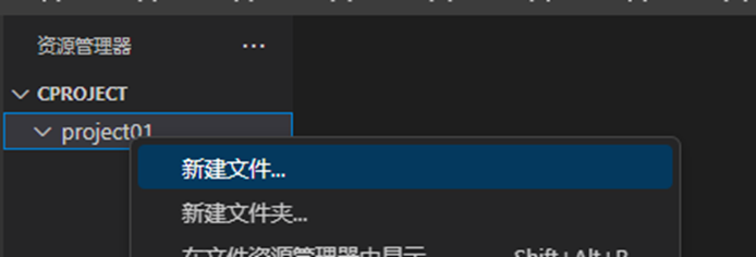 右击建立的工程文件夹,选择新建文件,建立一个文件后缀名为.c或.c++文件。如图所示: