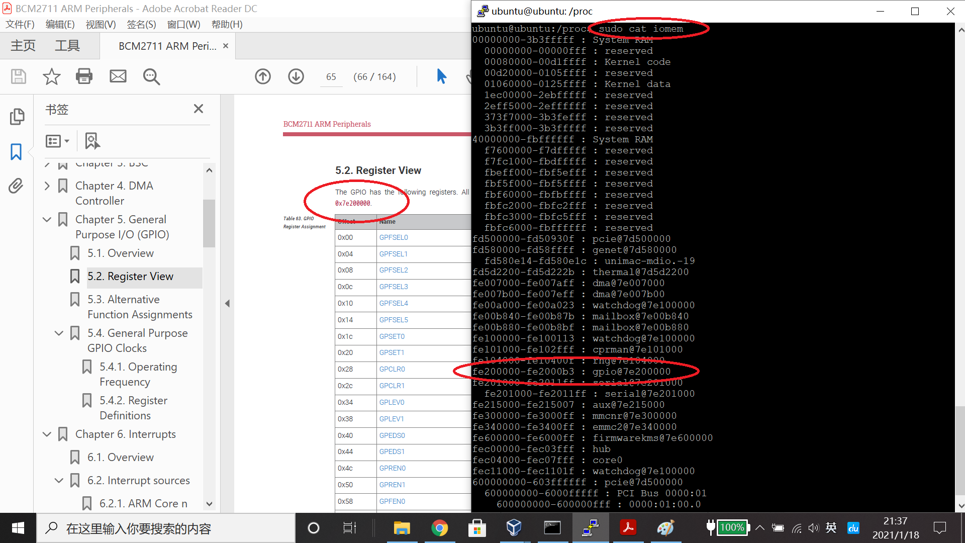 三、使用ioremap根据datasheet里寄存器地址获取内核空间的虚拟地址,从而访问GPIO寄存器