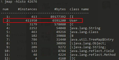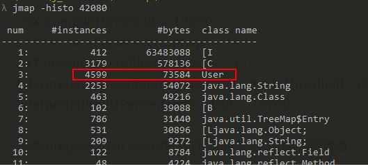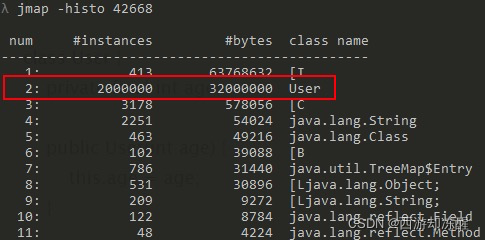 在我的机器中,当设置到1500时,在堆上生成的User对象反而升到4w个,目前还不清楚原因是啥...