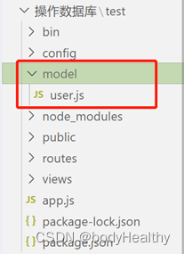 再创建一个model文件夹,在该文件夹下创建一个模型文件(如userModel),该模型跟数据库中的集合相对应,该模型文件可以限制集合的字段和每个字段的数据类型。(模型可以复用!)