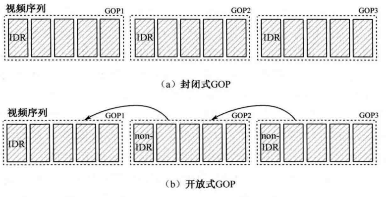 - 开放式GOP(Open GOP):第一个GOP以IDR图像开始,后面的GOP第一帧为non-IDR图像。