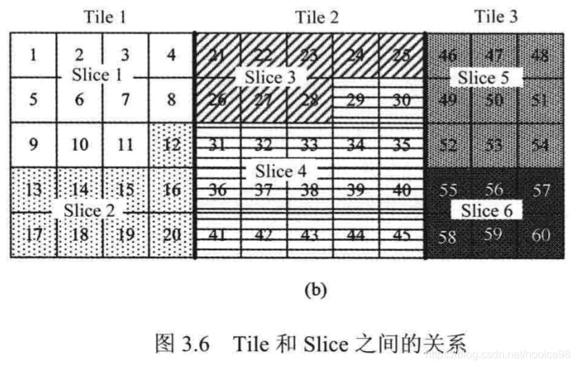 Slice和Tile划分目的都是为了进行独立解码,但划分方式不同,Tile为矩形,SLice为条带状