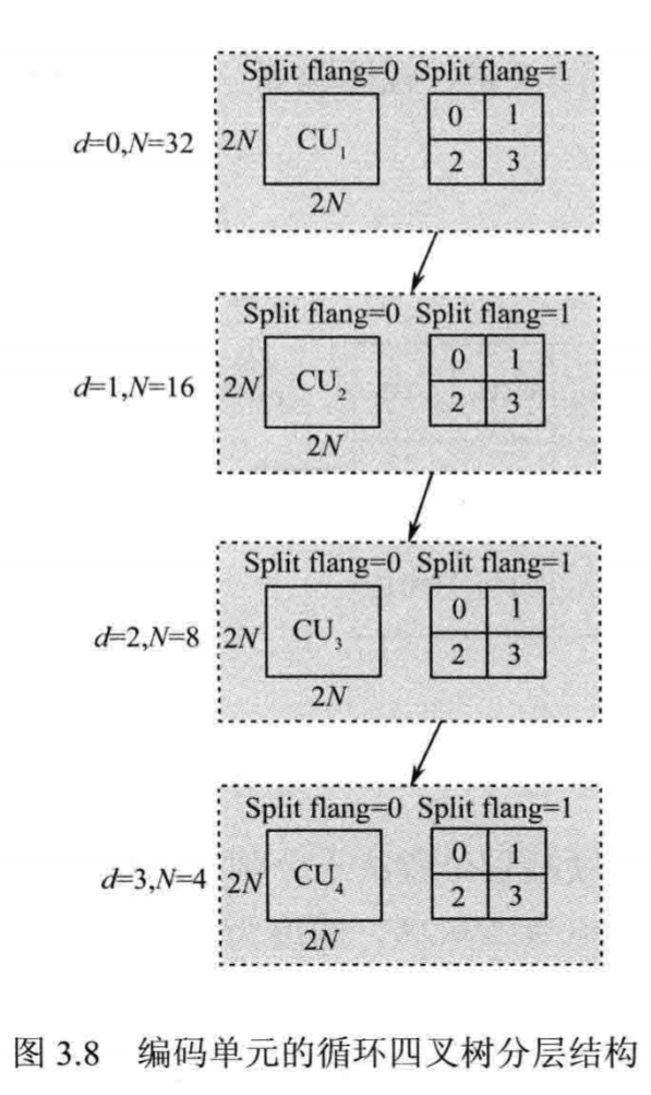编码单元是否继续被划分取决于分割标志位Split flag,值为0则不继续划分,为1则继续划分