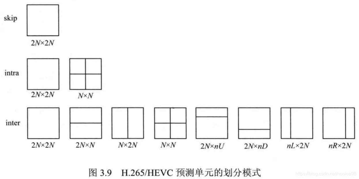 - 预测单元PU:进行帧内/帧间预测的基本单元