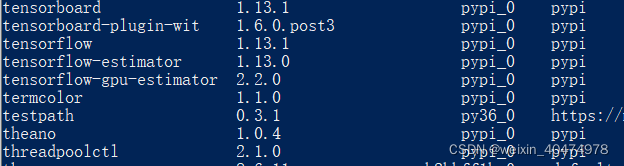 所以博主在此将pip list中的TensorFlow和Tensorboard包全部install,在conda中重新对两个包进行安装,以使其版本一致。