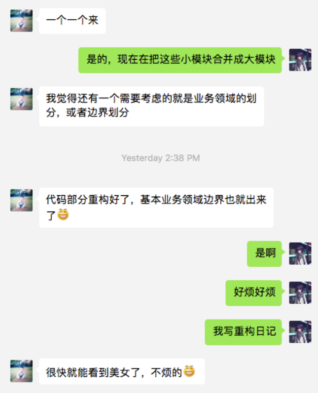 最近几个跑来写后端的同事问我,刚clone下来的项目里面一些模块是用来做什么的,为什么叫这些名字。我对项目的小模块不是很喜欢,但是为了让这几位同事对现在要接手的工作有点信心,想了个听起来很合理的理由跟他解释了一下,他们似懂非懂,说出一个“哦”字都能听出勉强,心里很难受。回过头,另一个老员工问我,这个项目里的某个模块为什么叫这个名字,有什么深意。当时的感觉:〃ωo啲吢ぬ痛ぐ