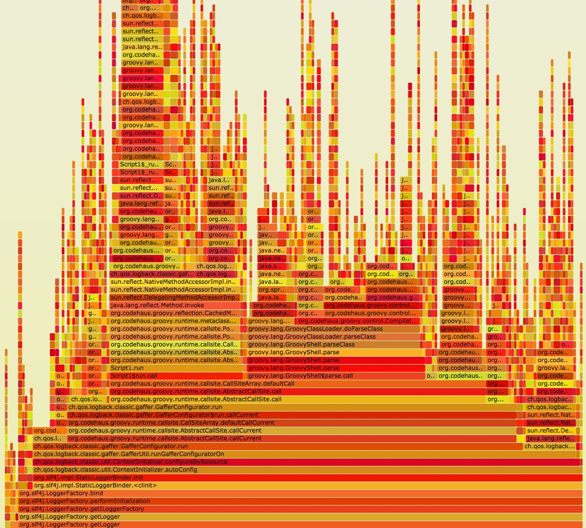 砍Groovy这个要提一下,数据库层可以理解使用delegate,不太理解为什么使用Groovy来做logback的配置,分析了一下火焰图,初始化耗了太多时间: