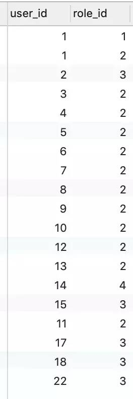 4. 用户和角色关联表