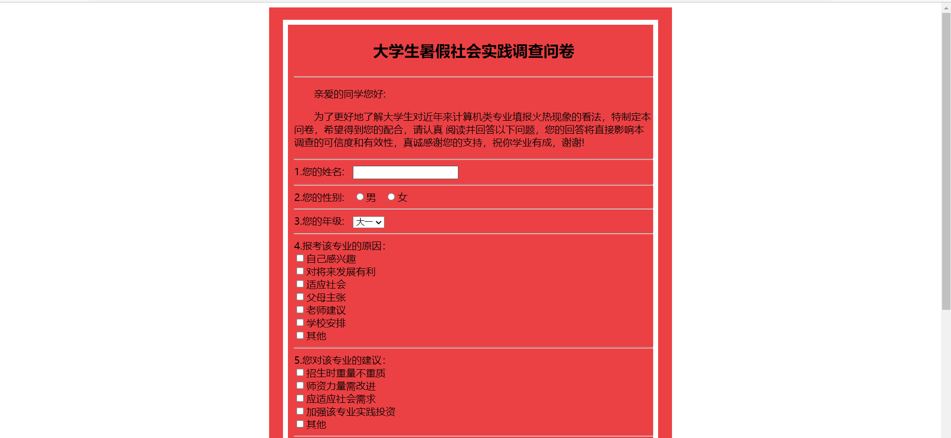 大学生暑假社会实践调查问卷(HTML+CSS)