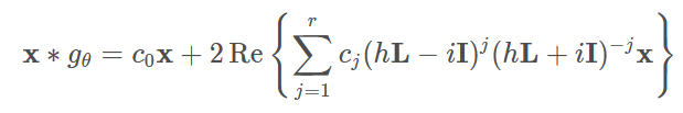 CayleyNet进一步应用了参数有理复合函数的Cayley多项式来捕获窄的频带。CayleyNet的谱图卷积定义为: