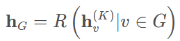 传递给输出层来执行节点级的预测任务,或者传递给readout函数来执行图级的预测任务。readout函数基于节点隐含表示生成整个图的表示。它通常被定义为![]()