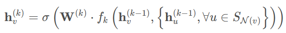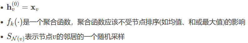 由于一个节点的邻居数量可能从1个到1000个甚至更多,因此获取一个节点邻居的完整大小是低效的。GraphSage(Inductive representation learning on large graphs,NIPS 2017)引入聚合函数的概念定义图形卷积。聚合函数本质上是聚合节点的邻域信息,需要满足对节点顺序的排列保持不变,例如均值函数,求和函数,最大值函数都对节点的顺序没有要求。图的卷积运算定义为: