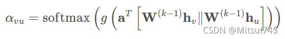 表示节点 v v v和它的邻居节点 u u u之间的连接的权重,通过下式计算