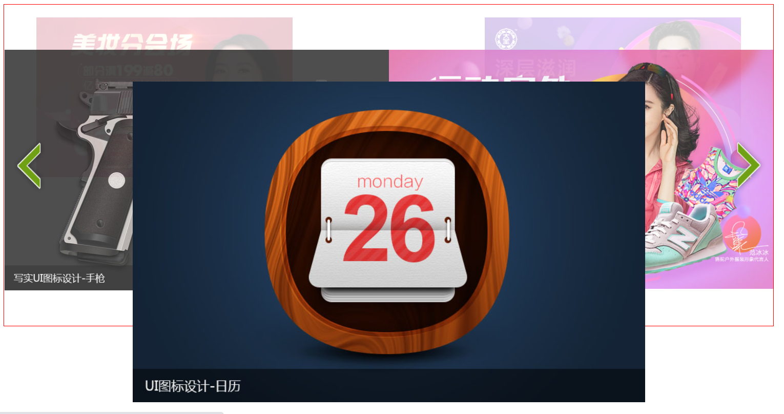 /*初始化 reset*/* {margin: 0;padding: 0}body {font: 12px/1.5 "Microsoft YaHei", "微软雅黑", SimSun, "宋体", sans-serif;color: #666;}ol,ul {list-style: none}a {text-decoration: none}img {border: 0;vertical-align: top;}textarea {outline: none;}a,button {cursor: pointer;}.wrap {width: 1200px;margin: 100px auto;border: 1px solid red;}.slide {height: 500px;position: relative;}.slide li {position: absolute;left: 200px;top: 0;}.slide li img {width: 100%;}.arrow {opacity: 0;}.prev,.next {width: 76px;height: 112px;position: absolute;top: 50%;margin-top: -56px;/*background-color: red;*/background: url(./images/prev.png) no-repeat;z-index: 99;}.next {right: 0;background-image: url(./images/next.png);}