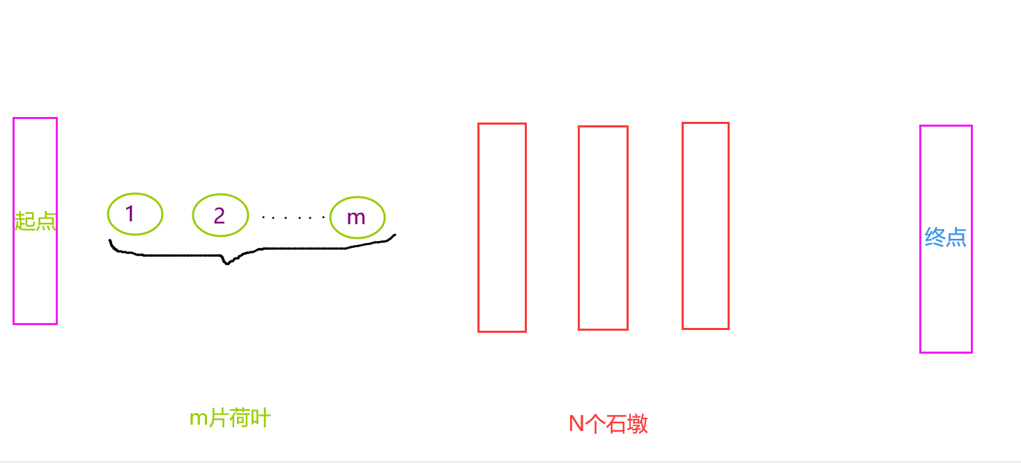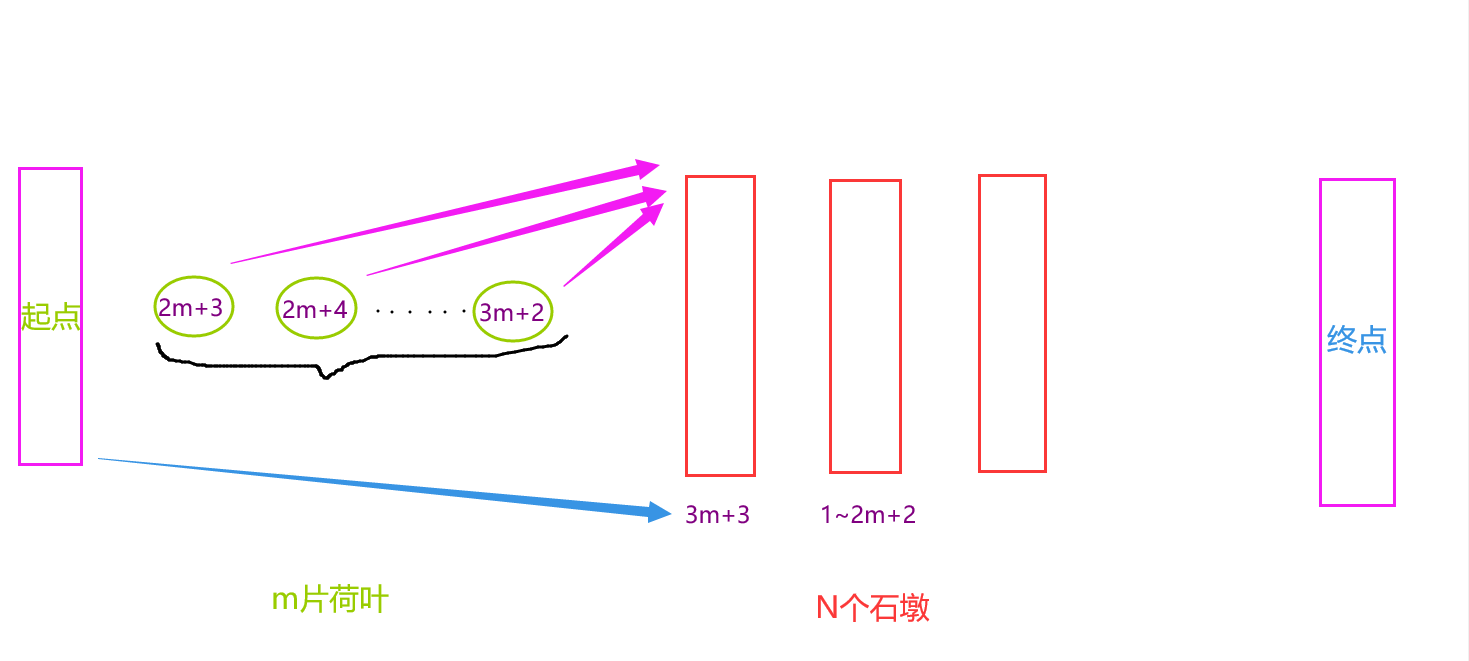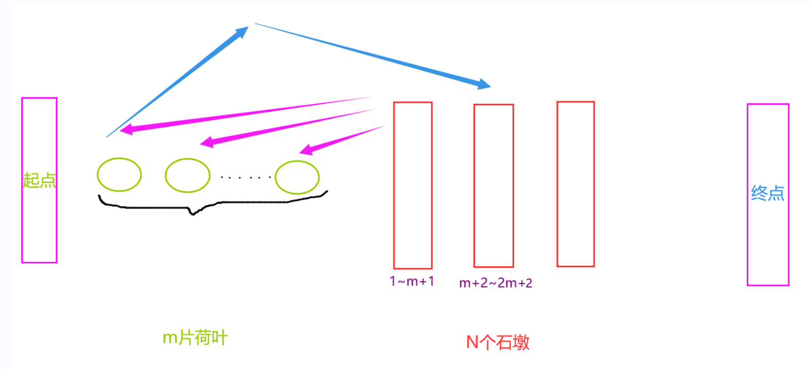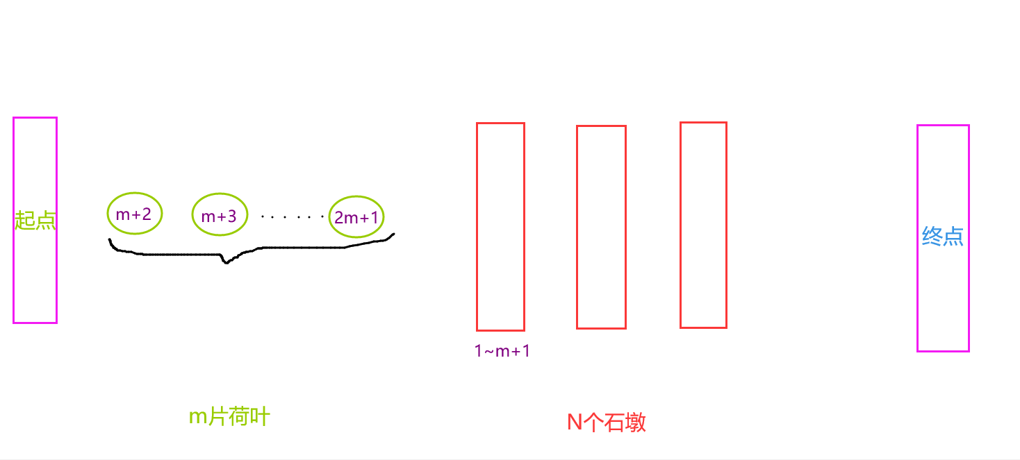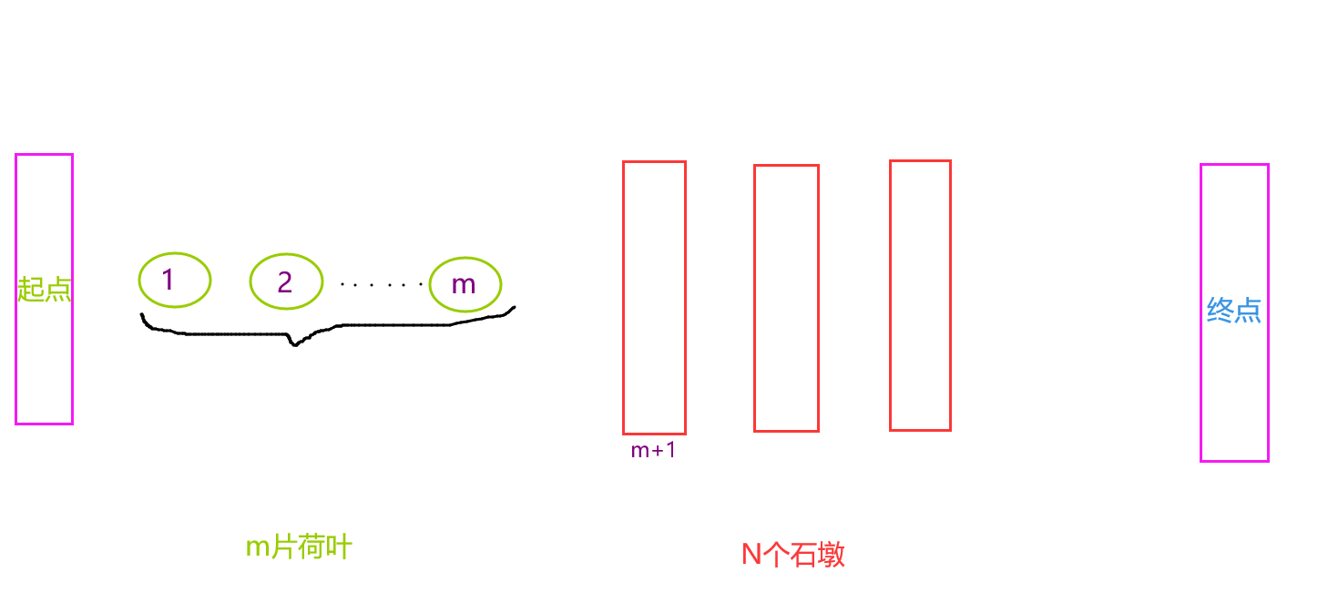 请看下图:1~m号青蛙全部跳到了m片荷叶上!