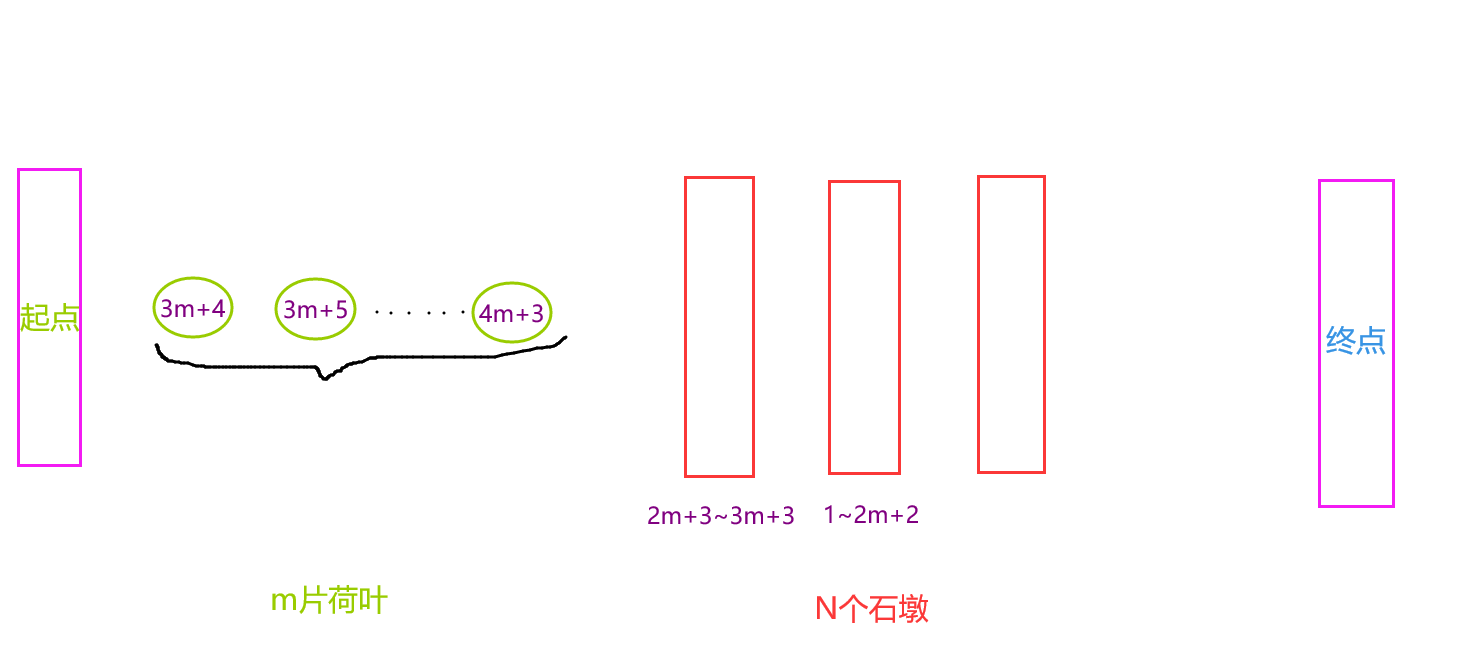 这时,不必急着将起点等候多时的2m+3~3m+2青蛙放到荷叶上,