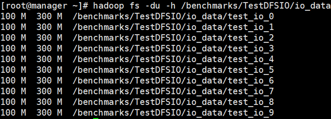 hadoop fs -du -h /benchmarks/TestDFSIO/io_data