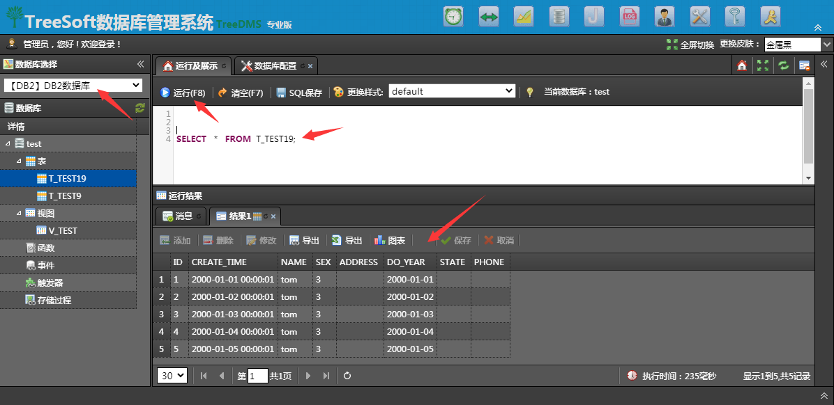 6、选择正确的目标库, 通过SQL查询命令,查看目标表数据,确认同步效果。