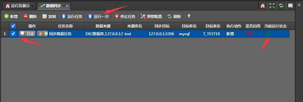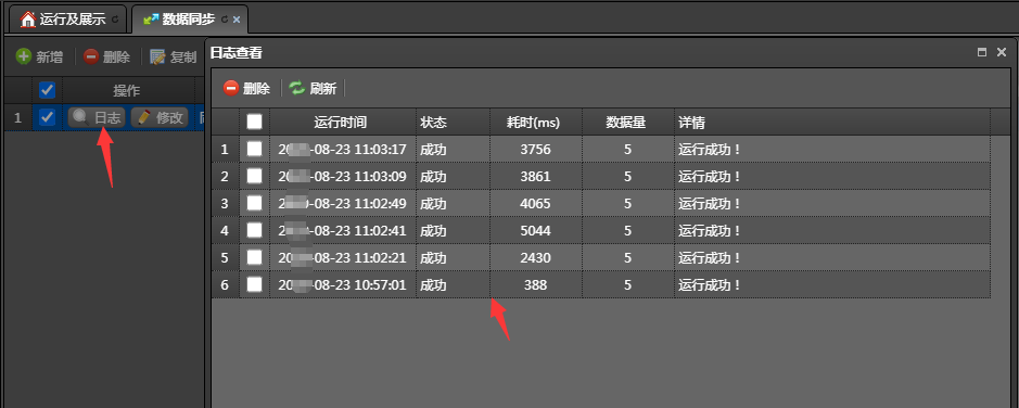5、执行一次,测试数据同步效果,查看同步日志