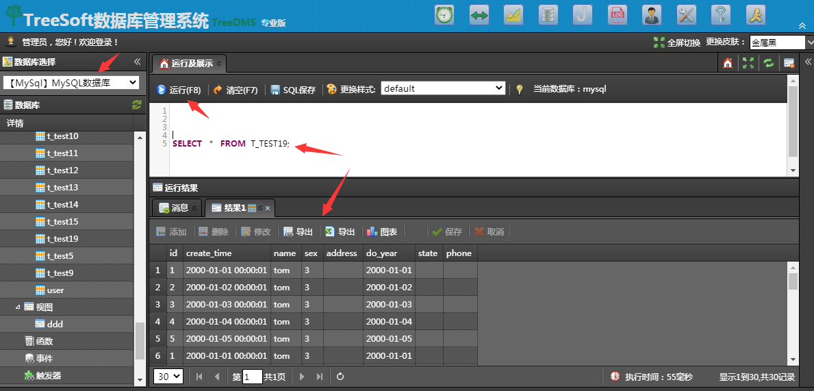 2、输入查询SQL命令,查询需同步的数据,并确认来源表、目标表字段等信息。这一步不是必须的,只是为了查询数据,并验证SQL语句。