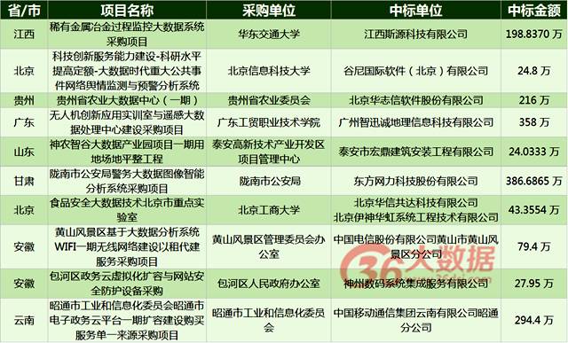 商机 | 大数据/政务云采购清单 招标6起,最高招标价为299.8万(11.18-11.21)