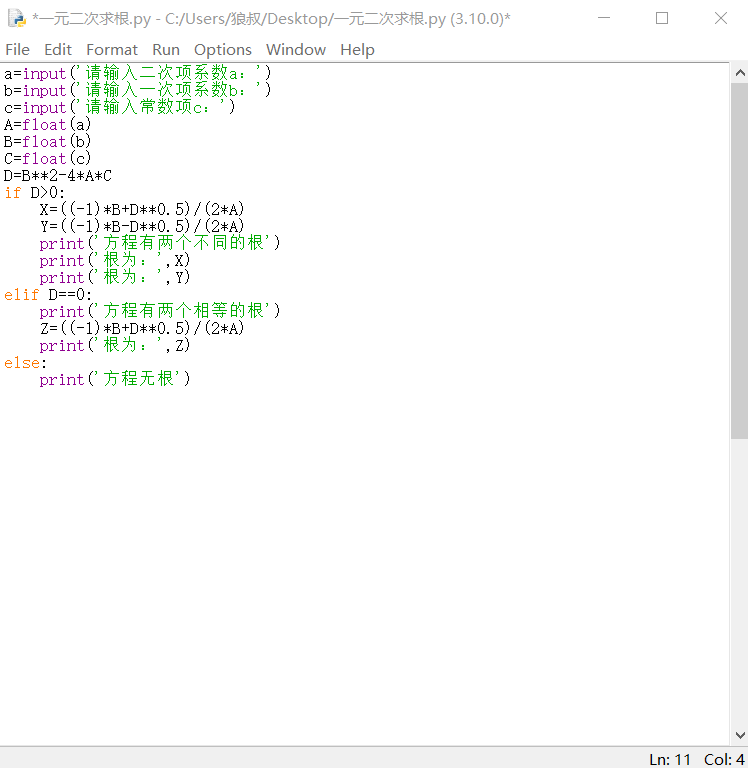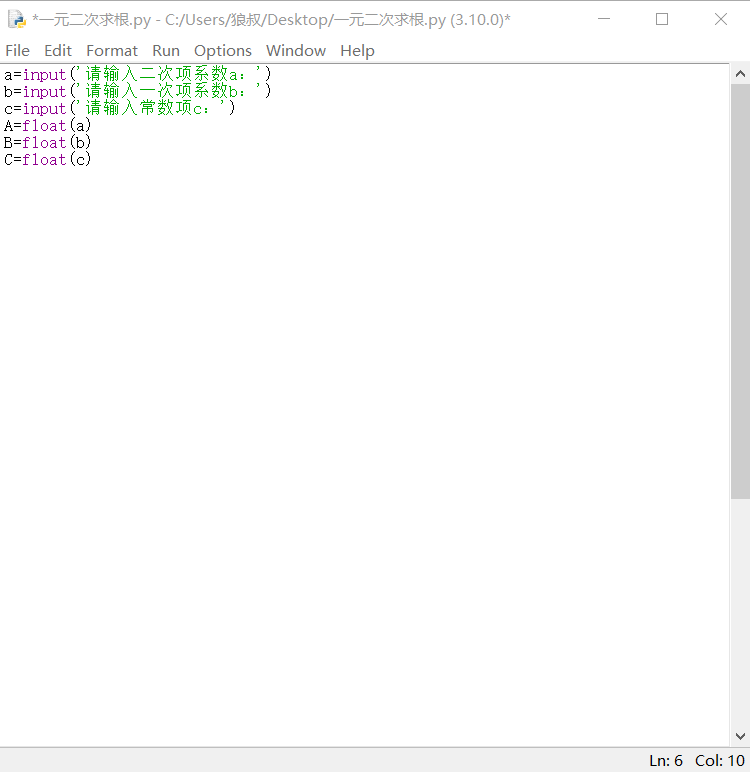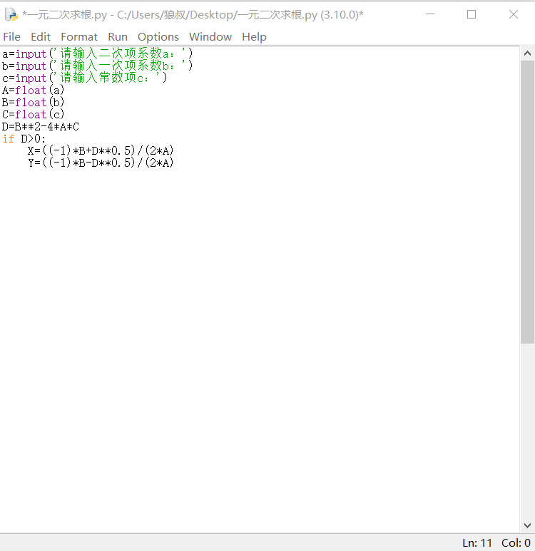 一、输入二次项系数 一次项系数 常数项,并为他们定义