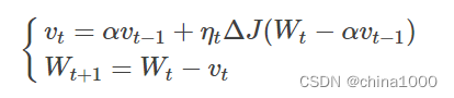 标准动量优化方法,核心思想就是,使当前训练数据的梯度受到之前训练数据的梯度的影响,对之前的梯度乘以一个权重项成为了动量项。能够减少梯度的波动,加快收敛。 | 1.通过动量更新,参数向量会在有持续梯度的方向上增加速度; 2.使梯度下降时的折返情况减轻,从而加快训练速度; | 如果数据集分类复杂,会导致 Vt-1 和 t时刻梯度 向量方向相差较大;在进行向量求和时,得到的 Vt 会非常小,反而使训练速度大大下降甚至模型难以收敛。 | 适合用于改进在随机梯度下降和批量梯度下降等方法中梯度出现折返等情况,以加速收敛。 | 通过在torch.optim.SGD()函数中设置参数momentum和dampening以实现。 |