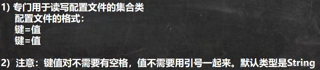 | Object setProperty(String key, String value) | 设置集合的键和值,都是String类型,底层调用 Hashtable方法 put |