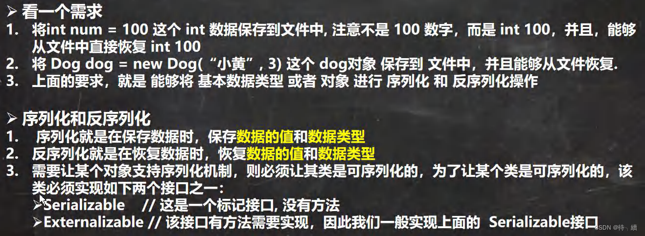 对象序列化:就是将对象保存到磁盘中,或者在网络中传输对象