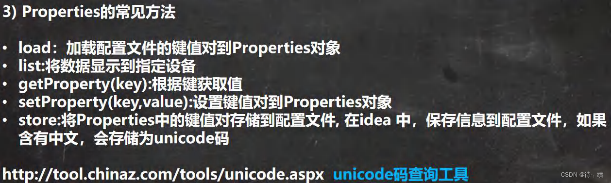public class PropertiesDemo02 {public static void main(String[] args) {//创建集合对象Properties prop = new Properties();//Object setProperty(String key, String value):设置集合的键和值,都是String类型,底层调用Hashtable方法putprop.setProperty("itheima001", "林青霞");/*Object setProperty(String key, String value) {return put(key, value);}Object put(Object key, Object value) {return map.put(key, value);}*/prop.setProperty("itheima002", "张曼玉");prop.setProperty("itheima003", "王祖贤");//String getProperty(String key):使用此属性列表中指定的键搜索属性