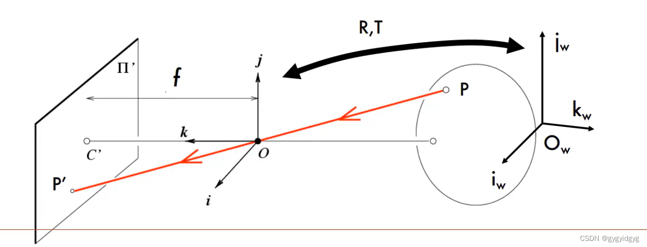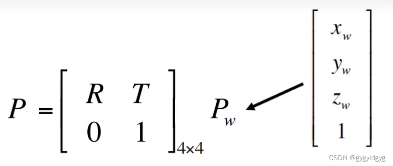 为了实现不同视角拍摄物体的照片可以统一结合在像素空间,需要“中间商”相机坐标系,而世界坐标系到相机坐标系,需要一个旋转平移矩阵P。