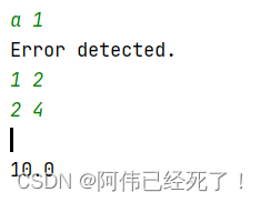 amount = []while a != "":a = input().split(" ")if a[0] == "":breaktry:a = list(map(lambda b: float(b), a))except:print("Error detected.")a[0] = 0a[1] = 0price.append(a[0])amount.append(a[1])sumA = 0