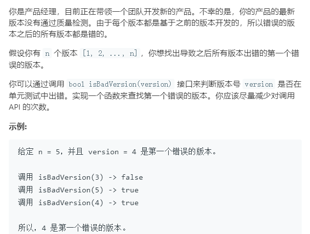 题目描述:给定一个元素 n 代表有 [1, 2, ..., n] 版本,在第 x 位置开始出现错误版本,导致后面的版本都错误。