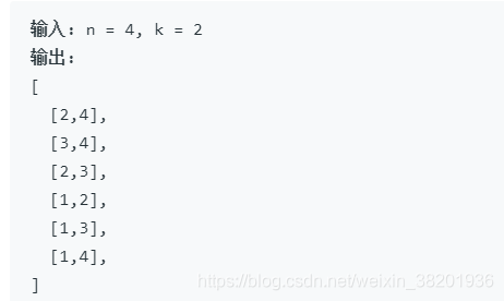 class Solution {public List> combine(int n, int k) {List> combinations = new ArrayList<>();List combineList = new ArrayList<>();backtracking(combineList, combinations, 1, k, n);return combinations;