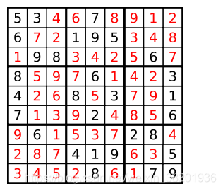 - 数字 1-9 在每一个以粗实线分隔的 3x3 宫内只能出现一次。