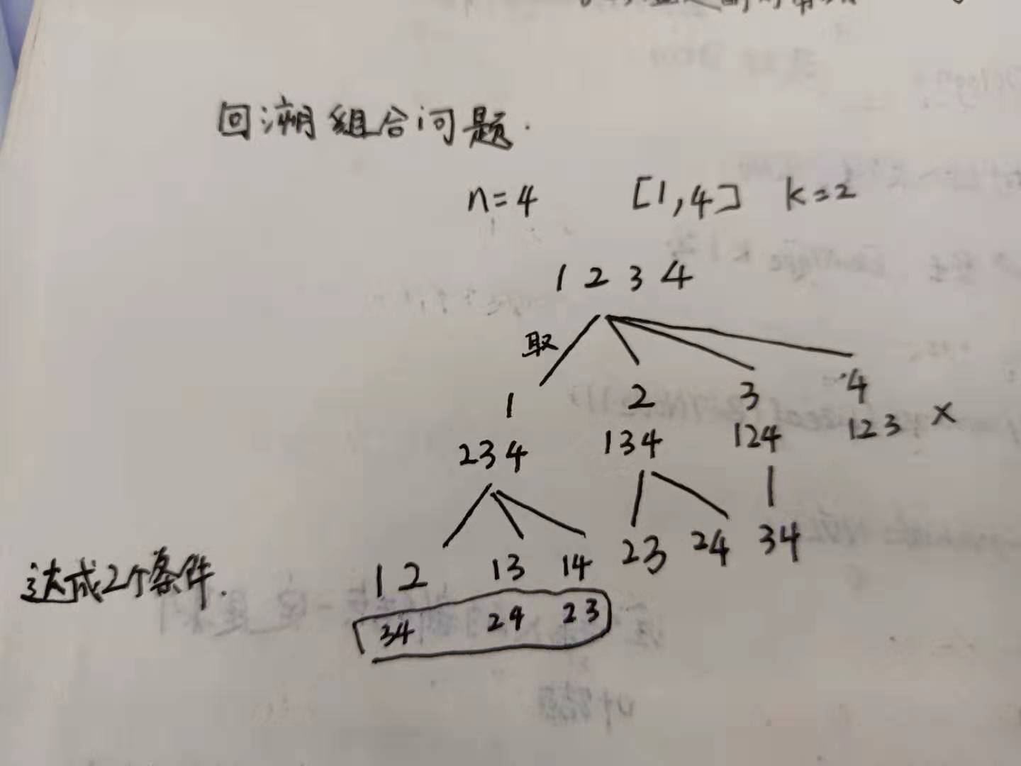 public static void dfs(int n,int k,int start,LinkedList<Integer> tmp,List<List<Integer>> resultList){if(tmp.size()==k){//需要重新赋个值 result 根据tmp 进行变化resultList.add(new ArrayList<>(tmp));return;}for(int i = start;i <= n;i++){tmp.addLast(i);dfs(n,k,i+1,tmp,resultList);tmp.removeLast();}}public static List<List<Integer>> combine(int n, int k) {List<List<Integer>> result = new ArrayList<>();if(n<1||k<1){return result;}// 这里用 双端队列 是自己之前没有考虑到的LinkedList<Integer> queue = new LinkedList<>();dfs(n,k,1,queue,result);return result;}