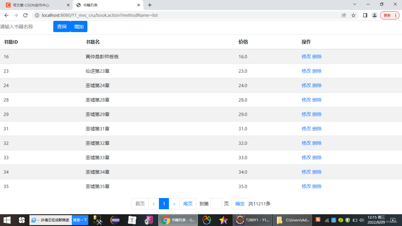 书籍ID 书籍名 价格 操作 ${b.bid} ${b.bname} ${b.price} 修改删除