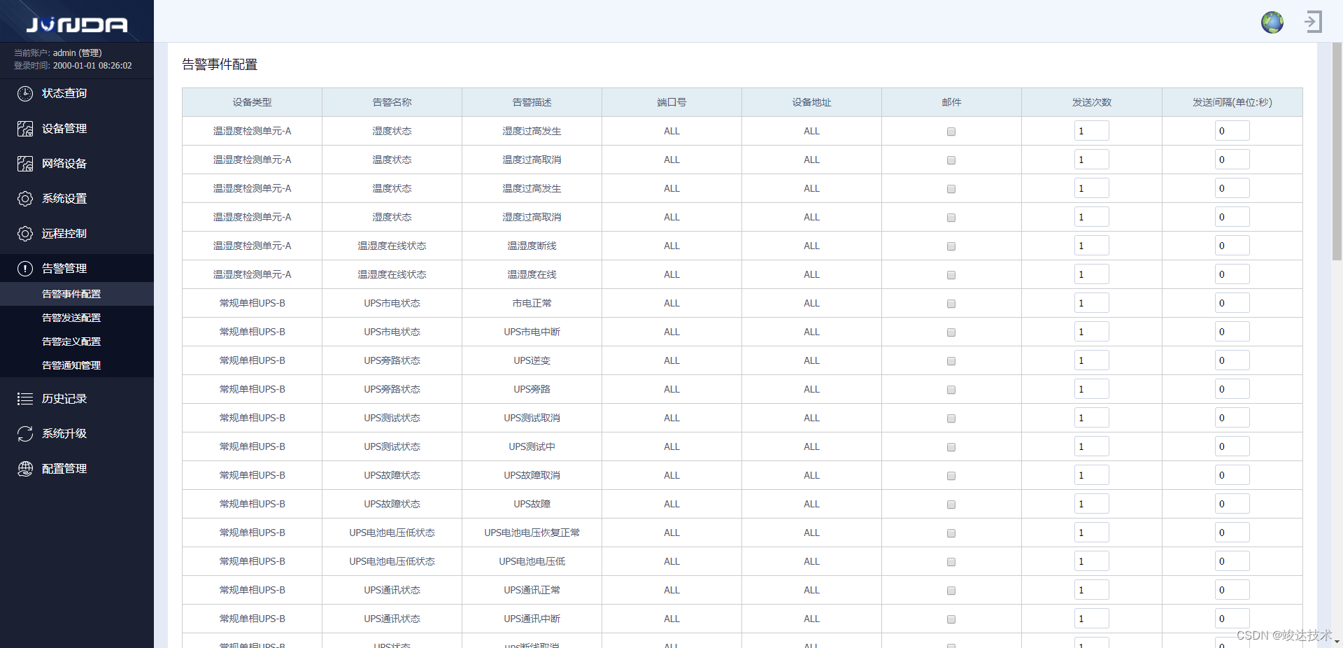 - 记录设备的运行状态,可供查询设备的告警历史并支持excel表格形式导出