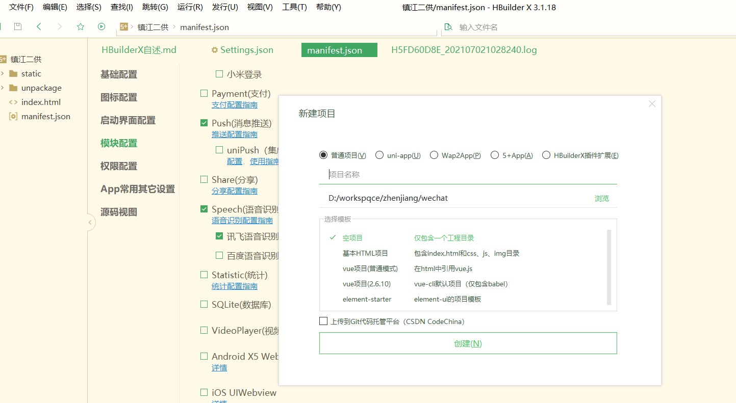 6:回到HBuilderx,点击manifest.json文件进行信息配置,