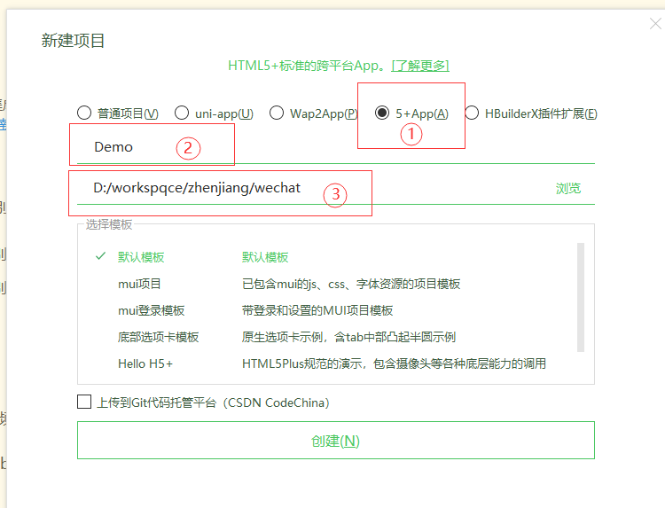 ③:创建的项目地址(后面打包的apk和项目的文件都在这个地址)