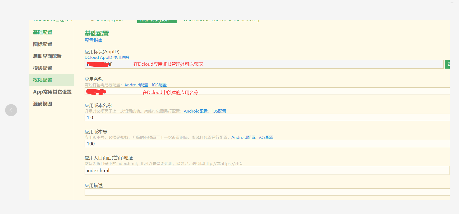 6.2图标配置、启动界面配置、权限配置、App常用其他设置、源码视图按照自己需要配置