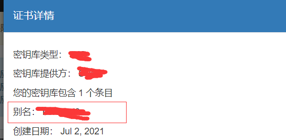 打包页面的证书别名在Dcloud的应用证书管理的证书详情中可以找到,如图所示: